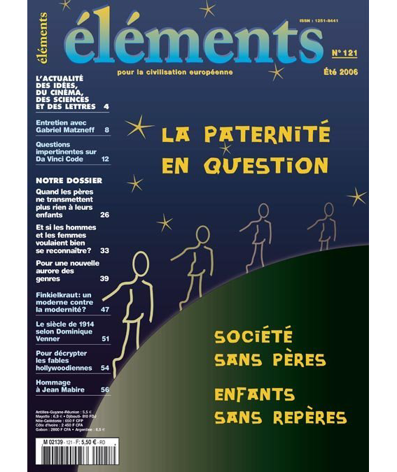 * * * « La société a adopté, sans la moindre limite et sans le moindre contre-pouvoir, l'intégralité des valeurs féminines », estimait récemment le pédiatre Aldo Naouri. De cette féminisation témoignent déjà le primat de l'économie sur la politique, le primat de la consommation sur la production, le primat de la discussion sur la décision, le déclin de l'autorité au profit du « dialogue », mais aussi l'obsession de la protection de l'enfant (et la survalorisation de la parole de l'enfant), la mise sur la place publique de l'intimité et les confessions intimes de la « télé-réalité », la vogue de l'« humanitaire » et de la charité médiatique, l'accent mis constamment sur les problèmes de sexualité, de procréation et de santé, l'obsession du paraître, du vouloir-plaire et du soin de soi (mais aussi l'assimilation de la séduction masculine à la manipulation et au « harcèlement»), la féminisation de certaines professions (école, magistrature, psychologues, travailleurs sociaux), l'importance des métiers de la communication et des services, la diffusion des formes rondes dans l'industrie, la sacralisation du mariage d'amour (un oxymore), la vogue de l'idéologie victimaire, la multiplication des « cellules de soutien psychologique », le développement du marché de l'émotionnel et de l'apitoiement, la nouvelle conception de la justice qui fait d'elle un moyen, non plus de juger en toute équité, mais de faire droit à la douleur des victimes (pour leur permettre de « faire leur deuil » et de « se reconstruire »), la vogue de l'écologie et des « médecines douces », la généralisation des valeurs du marché, la déification du « couple » et des « problèmes de couple », le goût de la « transparence » et de la « mixité », sans oublier le téléphone portable comme substitut du cordon ombilical, la disparition progressive du mode impératif dans le langage courant, et enfin la globalisation elle-même, qui tend à instaurer un monde de flux et de reflux, sans frontières ni repères stables, un monde liquide et amniotique (la logique de la Mer est aussi celle de la Mère). Après la pénible « culture raide » des années trente, tout n'a certes pas été négatif dans cette féminisation. Mais celle-ci verse désormais dans l'excès inverse. Plus encore qu'elle n'est synonyme de dévirilisation, elle débouche sur l'effacement symbolique du rôle du Père et sur l'indistinction des rôles sociaux masculin/féminin. La généralisation du salariat et l'évolution de la société industrielle font aujourd'hui que les hommes n'ont tout simplement plus de temps à consacrer à leurs enfants. Le père a peu à peu été réduit à un rôle économique et administratif. Transformé en « papa », il tend à devenir un simple soutien affectif et sentimental, fournisseur de biens de consommation et exécuteur des volontés maternelles, en même temps qu'un assistant socialo-ménagère, aide-marmiton, changeur de couches et pousseur de caddies. Or, le père symbolise la Loi, référent objectif qui s'élève au-dessus des subjectivités familiales. Alors que la mère exprime avant tout le monde des affects et des besoins, le père a pour rôle de couper le lien fusionnel entre l'enfant et sa mère. Instance tierce qui fait sortir l'enfant de la toute-puissance infantile et narcissique, il permet la rencontre de celui-ci avec son contexte social-historique, et lui permet de s'inscrire dans un monde et dans une durée. Il assure « la transmission de l'origine, du nom, de l'identité, de l'héritage culturel et de la tâche à poursuivre » (Philippe Forget). Faisant le pont entre la sphère familiale privée et la sphère publique, limitant le désir par la Loi, il s'avère par là indispensable à la construction de soi. Mais de nos jours, les pères tendent à devenir « des mères comme les autres ». « Ils veulent eux aussi être porteurs de l'Amour et non plus seulement de la Loi » (Éric Zemmour). Or, l'enfant sans père a le plus grand mal à accéder au monde symbolique. En quête d'un bien-être immédiat qui n'a pas à affronter la Loi, l'addiction à la marchandise devient tout naturellement son mode d'être. Une autre caractéristique de la modernité tardive est l'indistinction des fonctions masculine et féminine, qui fait des parents des sujets flottants, égarés dans la confusion des rôles et le brouillage des repères. Les sexes sont des complémentaires antagonistes, ce qui veut dire qu'ils s'attirent et se combattent en même temps. L'indifférenciation sexuelle, recherchée dans l'espoir de pacifier les relations entre les sexes, aboutit à faire disparaître ces relations. Confondant identités sexuelles (il n'y en a que deux) et orientations sexuelles (il peut y en avoir une multitude), la revendication d'homoparentalité (qui enlève à l'enfant les moyens de nommer sa parentèle et nie l'importance de la filiation dans sa construction psychique) revient à demander à l'État qu'il fabrique des lois pour valider des moeurs, légaliser une pulsion ou donner une garantie institutionnelle au désir, ce qui n'est pas son rôle. Paradoxalement, la privatisation de la famille est allée de pair avec son invasion par l' « appareil thérapeutique » des techniciens et des experts, conseillers et psychologues. Cette « colonisation du monde vécu » sous prétexte de rationalisation de la vie quotidienne a renforcé tout à la fois la médicalisation de l'existence, la déresponsabilisation des parents, et les capacités de surveillance et de contrôle disciplinaire de l'État. Dans une société considérée comme en dette perpétuelle vis-à-vis des individus, dans une république oscillant entre le mémoriel et le compassionnel, l'État-Providence, affairé à la gestion lacrymale des misères sociales par le biais d'une cléricature sanitaire et sécuritaire, s'est transformé en État maternel et maternant, hygién
