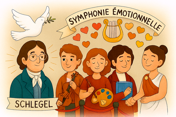 Avec le temps, le romantisme de Schlegel a muté. Il a transformé les beaux-arts en thérapie émotionnelle. En fait, plus rien n'est beau ou laid. Si nous définissons l'être humain comme essentiellement émotionnel, toute production artistique n'est que la projection d'un sentiment qui n'a pas trouvé d'autre moyen de s'exprimer. Et, à la limite, tout être humain est un artiste. L'art naît du besoin d'être aimé, mais surtout d'évacuer les sentiments impossibles à exprimer autrement. Alors, comment aimer le pauvre humain dont les sentiments sont le produit de situations douloureuses ? * * *