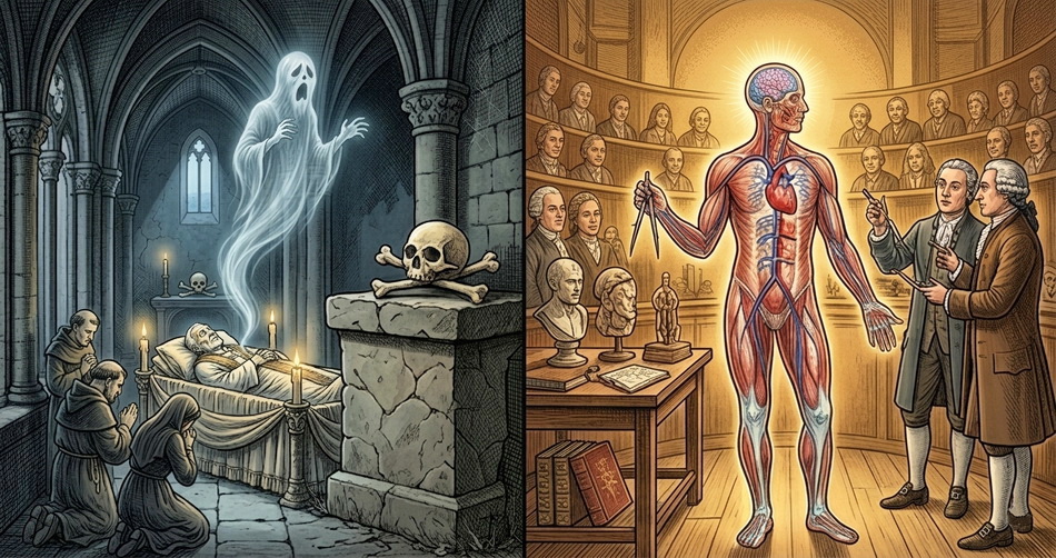 L'âme se manifeste aussitôt que le corps est matériellement constitué de toutes ses fonctions vitales. Elle s'éteint avec les fonctions vitales comme le feu s'évanouit sans le